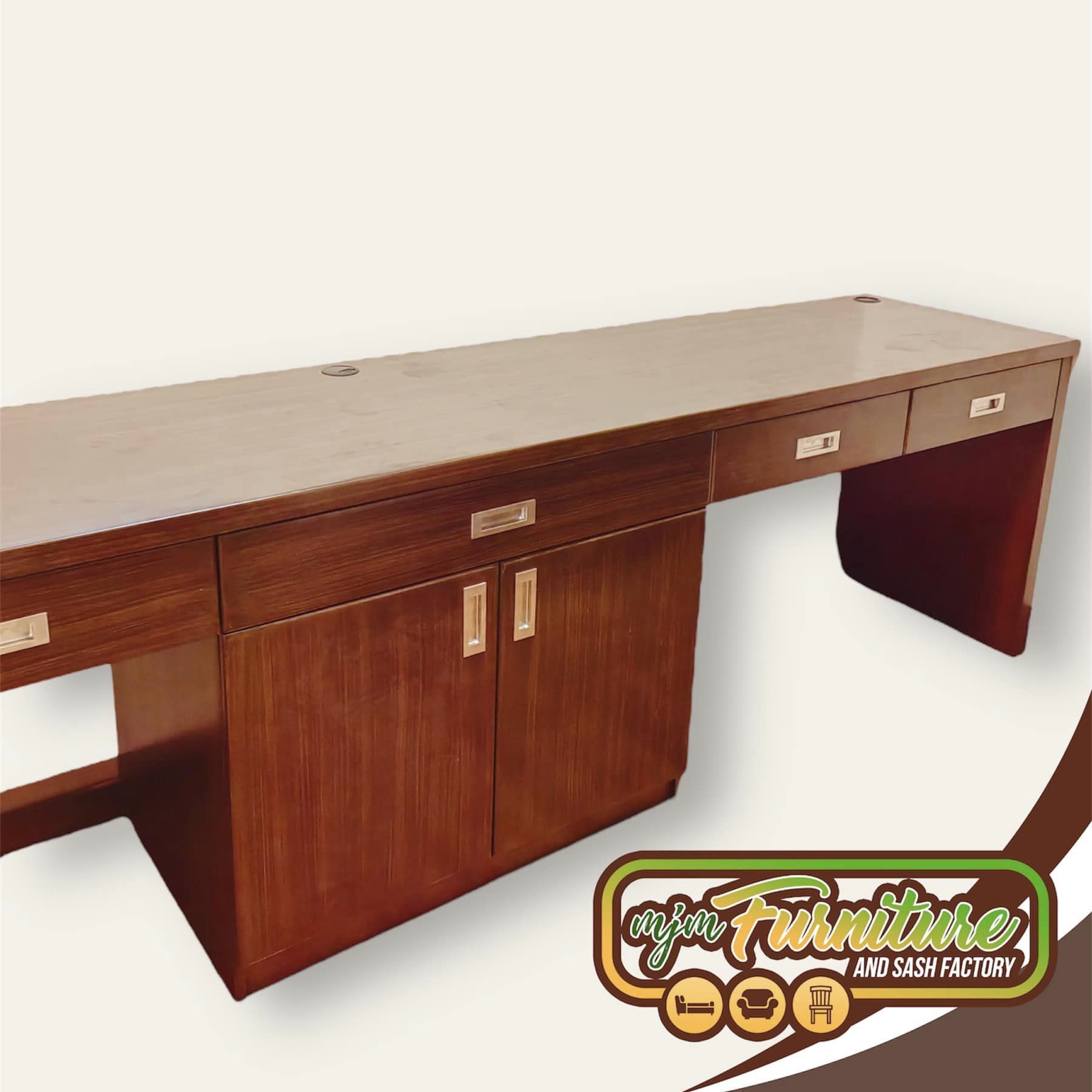 Maximize efficiency and collaboration with this Extra-Long Tandem Office Desk, the perfect workstation solution for two people or anyone needing extensive surface area. Featuring a warm, natural wood-tone finish, this desk provides a spacious, uninterrupted worktop ideal for multiple monitors and projects. It is built for organization, boasting dual sets of lockable drawers (two on each end) and a large, central double-door storage cabinet, offering secure and private storage for files and suppl